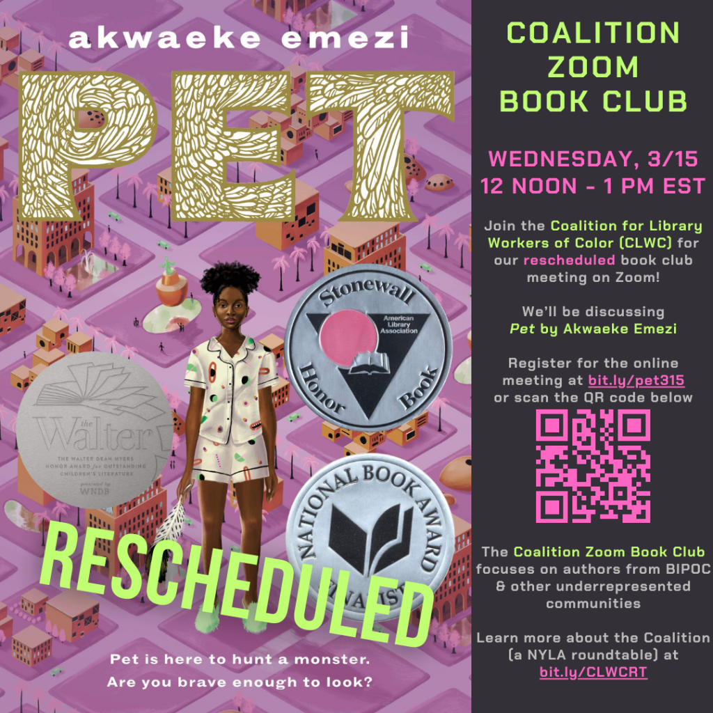 Networking/Social Event March 7, 2023March 7, 2023 “Pet” by Akwaeke Emezi NYLA Book Club Discussion: March 15, 2023 Posted By: sjudlis Click Image to Visit Event Registration Page